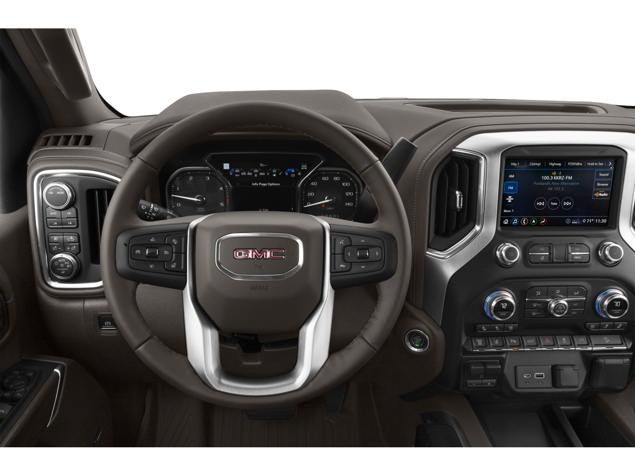 - Audio system, Premium GMC Infotainment System with 8" diagonal color touch-screen includes multi-touch display, AM/FM stereo, Bluetooth® streaming audio for music and most phones; featuring wireless Android Auto and Apple CarPlay capability for compatible phones, advanced voice recognition, in-vehicle apps, personalized profiles for infotainment and vehicle settings (Includes (PZ8) Hitch Guidance with hitch view.)
