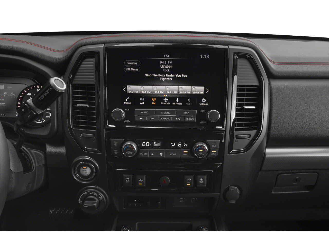 - Radio: NissanConnect w/Navigation -inc: AM/FM/SiriusXM, Fender premium audio system w/12 speakers (including amp, underseat subwoofer, center speaker and front/rear tweeters), wireless Apple CarPlay, Android Auto, 9" touchscreen display, Wi-Fi hotspot, Nissan door-to door navigation w/3D building graphics and satellite imagery, connected navigation features including online POI search, over-the-air map updates, and online premium traffic information, SiriusXM Traffic, SiriusXM Travel Link (weather, fuel prices, movie listings, stock info, sports and parking), TomTom weather, 2 illuminated USB connections (1 type A, 1 type C), Bluetooth® hands-free phone system, streaming audio via Bluetooth®, hands-free text messaging assistant, DVD pre-wire and NissanConnect services
