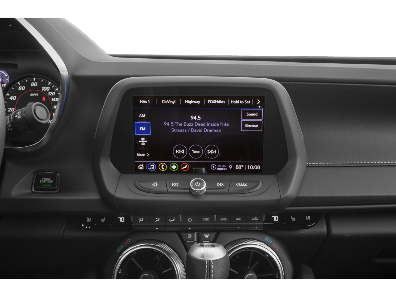 - Head-Up Display with color digital readouts for vehicle speed, selected gear, G-Force, audio system information, high-beam indicator, compass, outside air temperature, tachometer, vehicle messages, Turn-by-Turn information and phone information